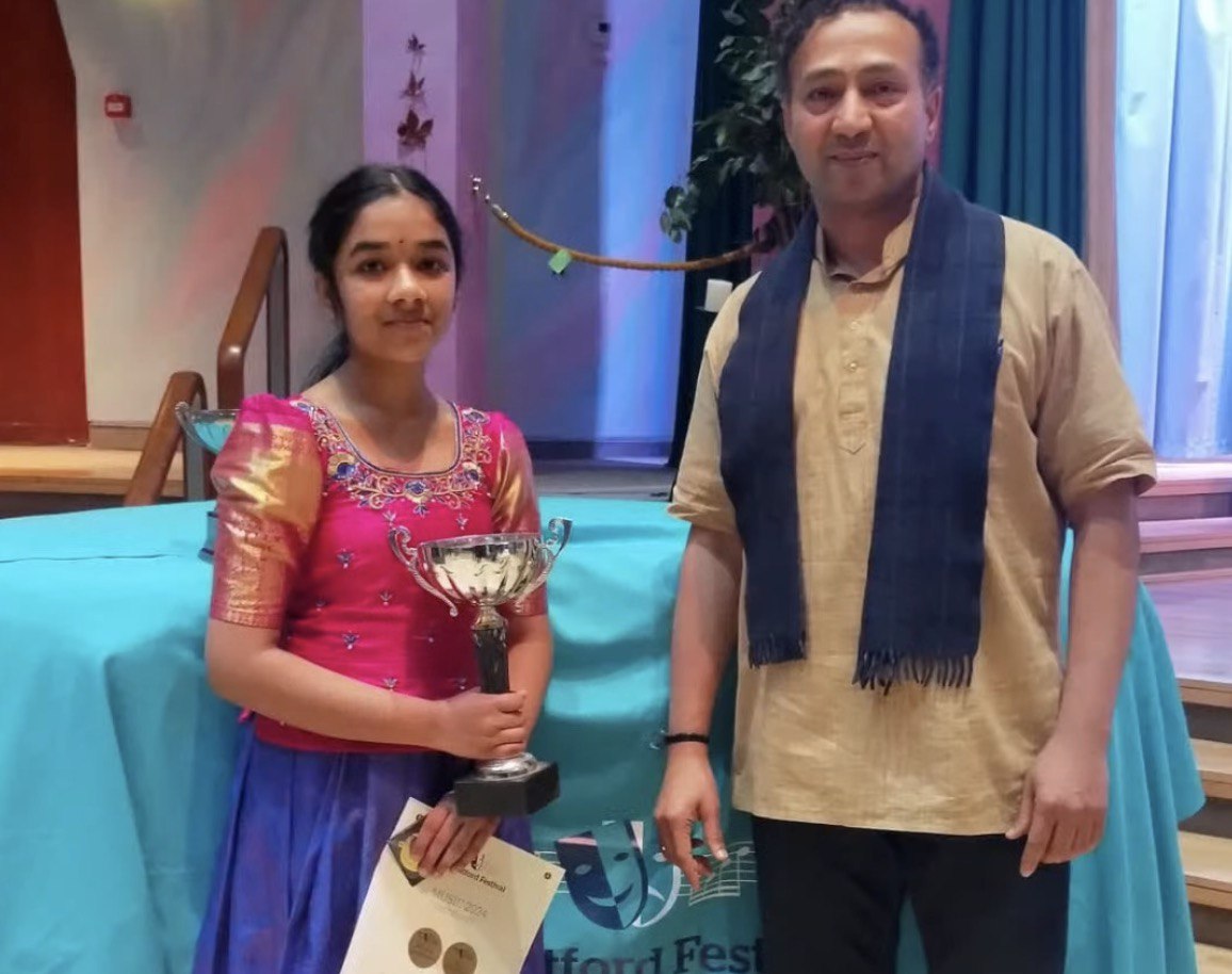 10+ years of intensive training in Carnatic violin. Performed in several kacheris (concerts) and completed the prestigious PSTU certificate course, demonstrating advanced proficiency in classical Indian music.