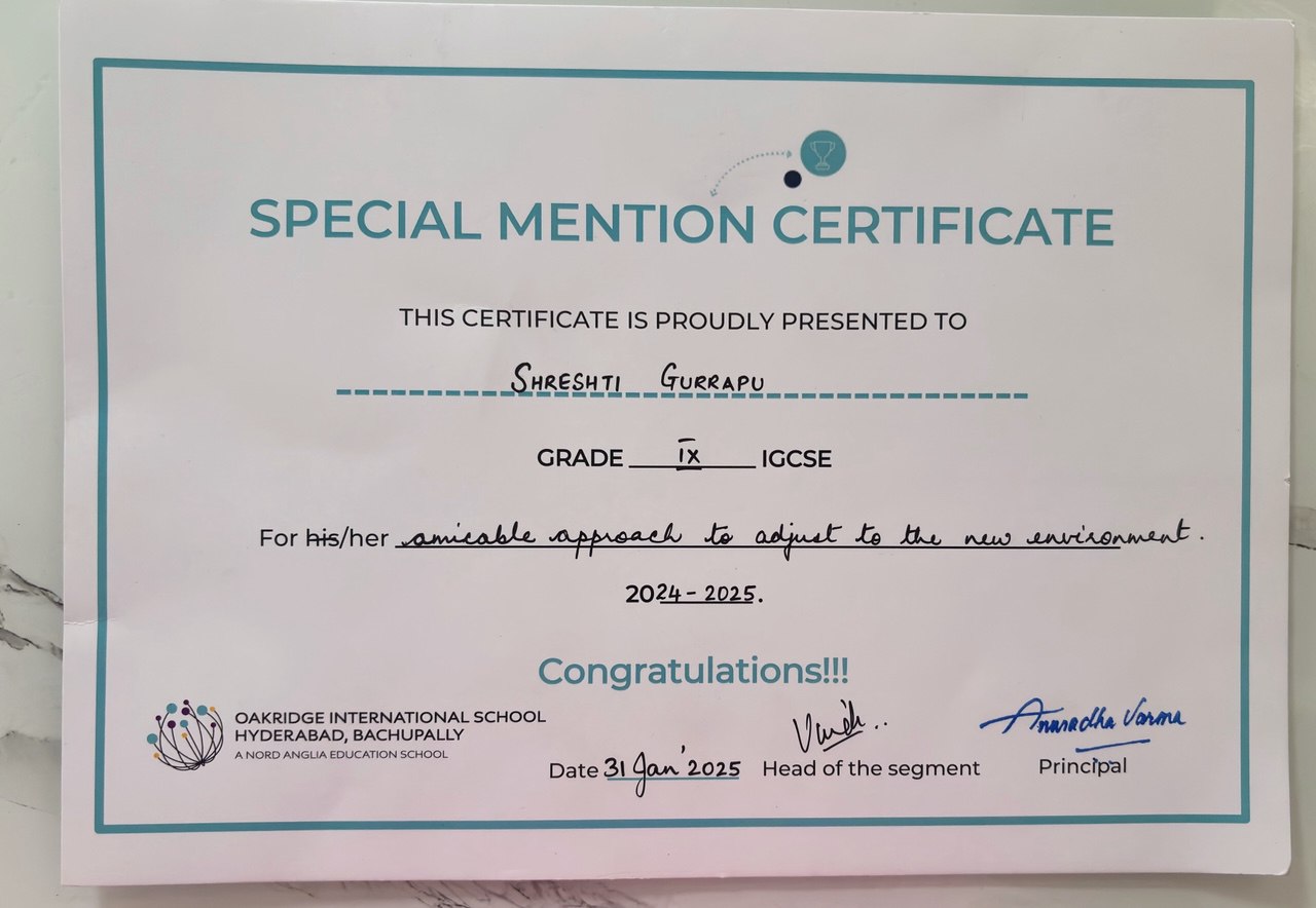 Returned to India and completed my IGCSEs at this premier international school. Successfully adapted back to the Indian environment while maintaining the international curriculum standards.